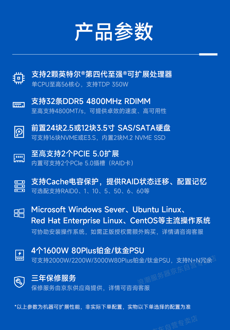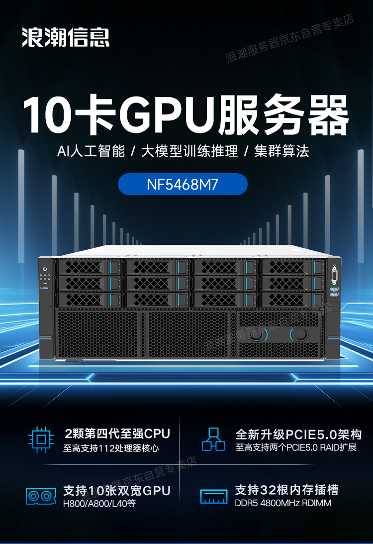 浪潮NF5468M7服务器8462Y*2/64G*8/1.6T*3/960GB*2/VROC/万兆/千兆/3000W/三年联保