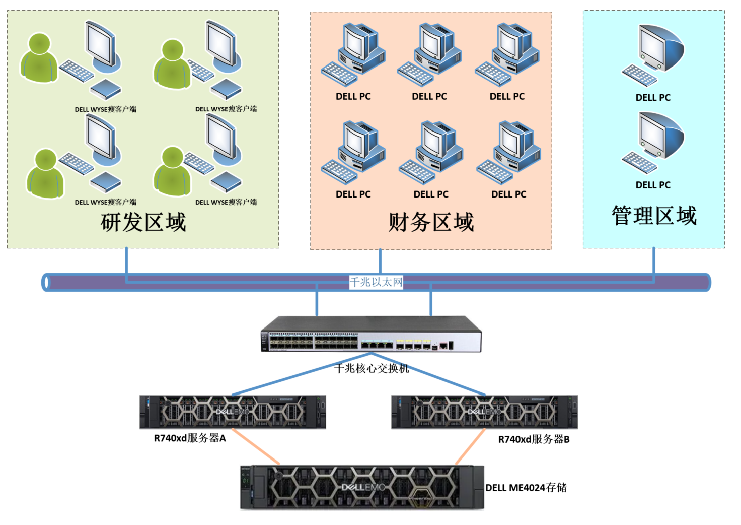 (3)提供DELL EMC ME4024存储设备,满足桌面云用户和8T文件共享空间,并且