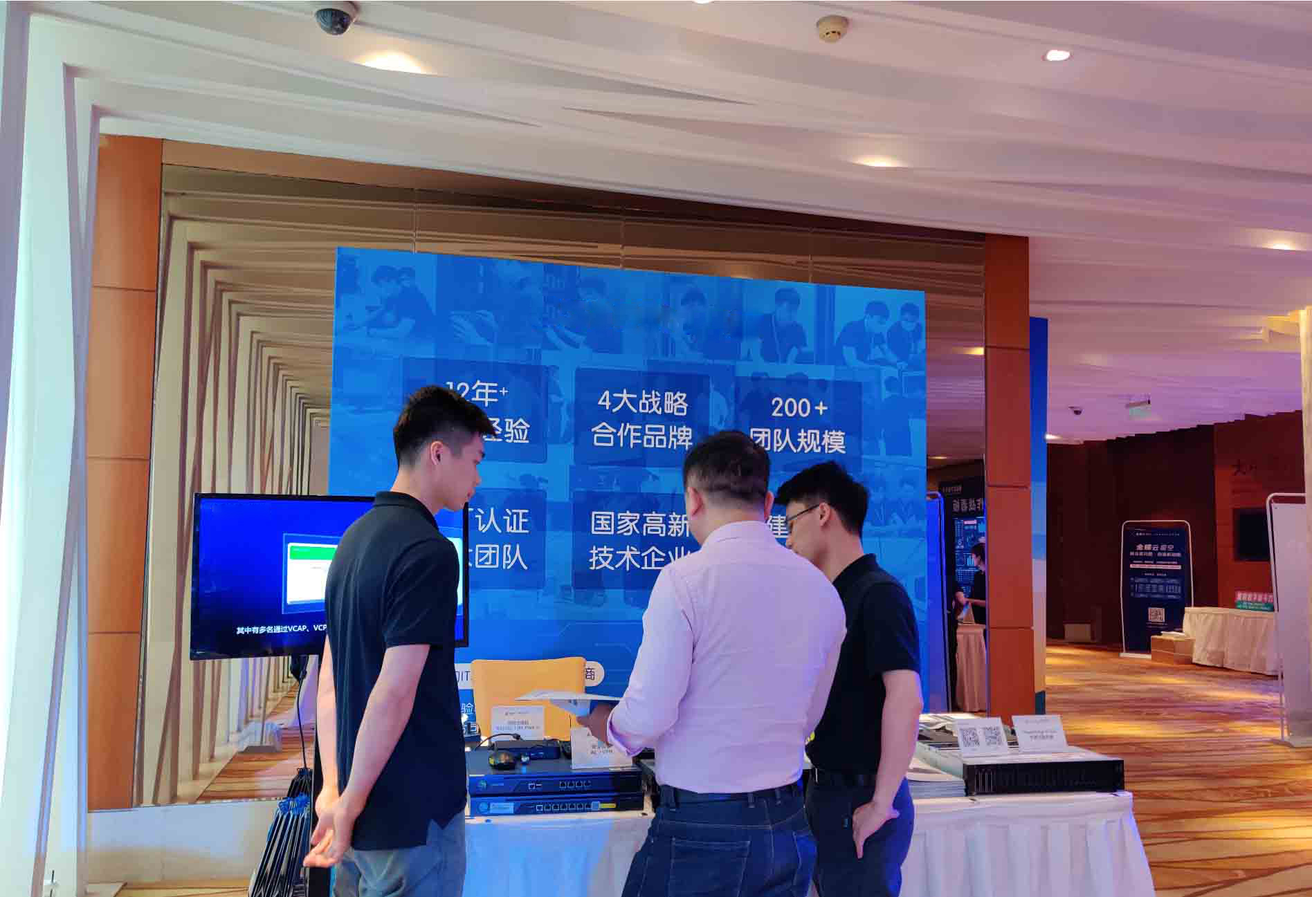 为给更多企业客户带来更直观的体验,商红信息携手深信服科技,在现场为与会者带来不少“有料”产品——深信服的桌面云解决方案、防火墙和VPN等,现场众多与会者对展示产品饶有兴致,和现场人员展开火热的交流。