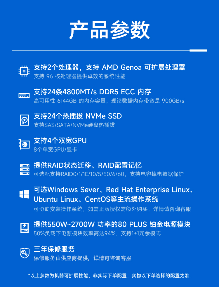 > 产品中心> 浪潮NF5280A7:2*9654/192G 4800/1.6T+3*8T/8204/2*2000W>
