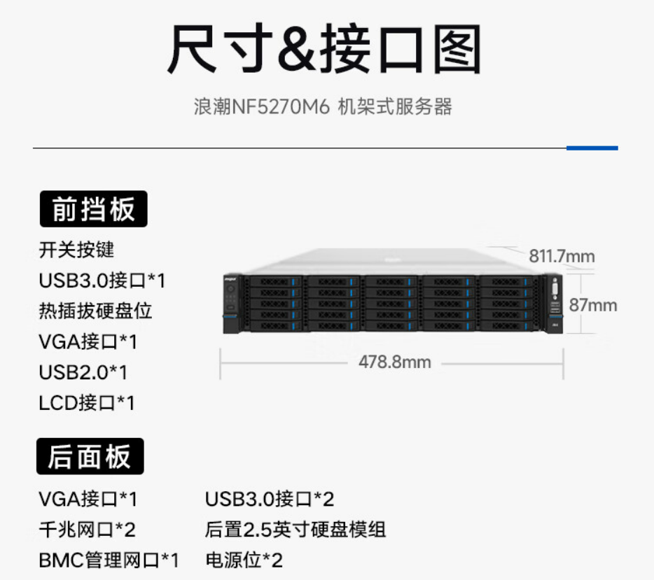 浪潮NF5280M6/2*6334/4*64G/3*1.92T/3*8T/8204/千兆/万兆含模/2*800W/5NBD
