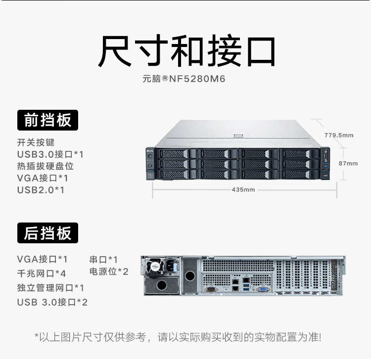 NF5280M7/6430*2/512G/480G/8T*12/8204/双口万兆/昇腾Atlas 300l*2/1600W*2