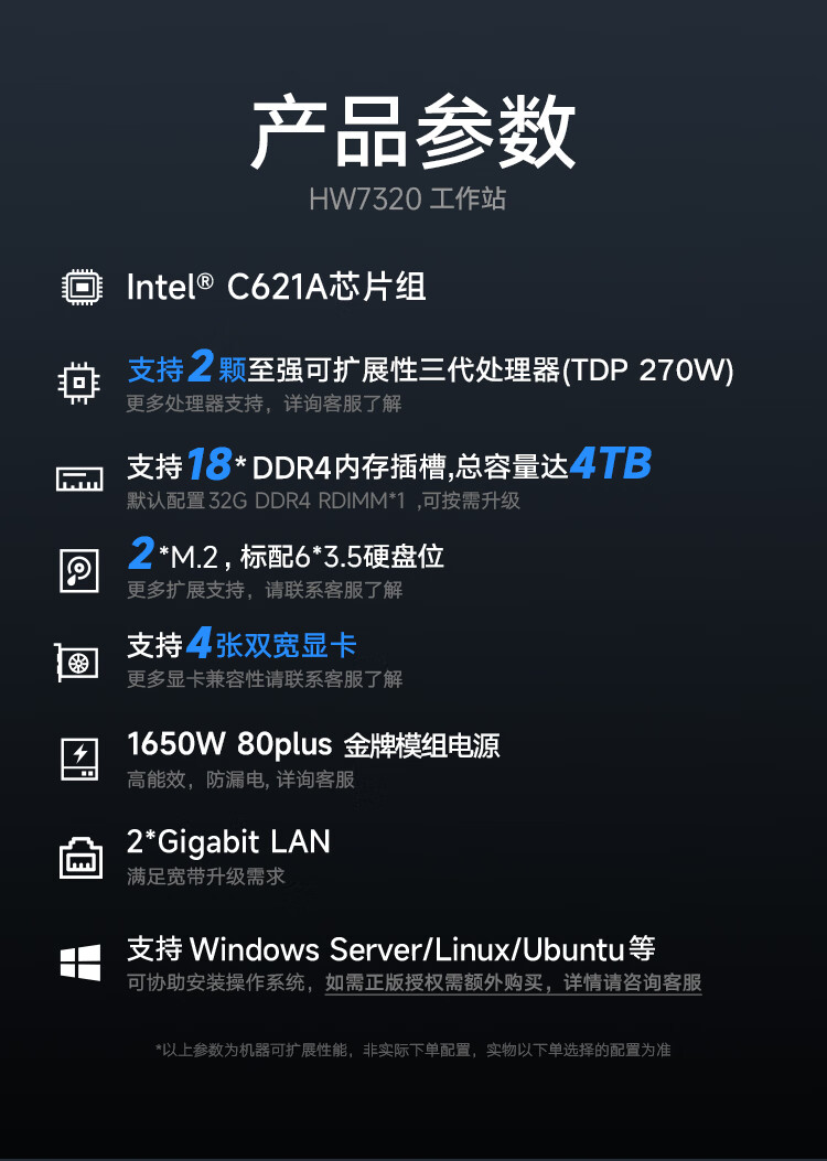 > 产品中心> 数聚红芯Linkupai HW7320 双路GPU计算深度学习模型训练塔式服务器 2*银牌4310/32G内存/2TB固态/集显>