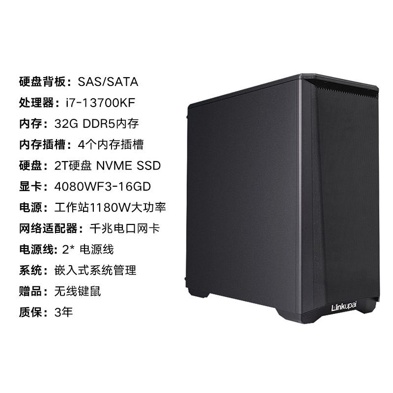 数聚红芯3660塔式工作站酷睿i7-13700KF/2*16G内存/2TB/RTX4080 16G