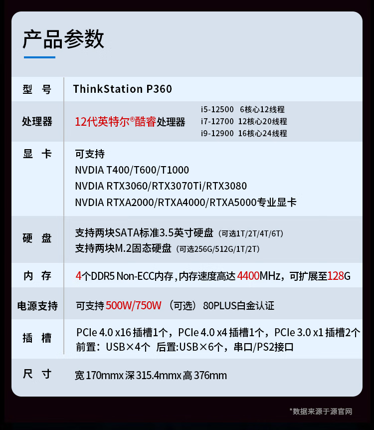 > 产品中心> 联想(Lenovo)ThinkStation P360 图形工作站 I7-12700/16G/512G+2T/RTXA4000/三年>