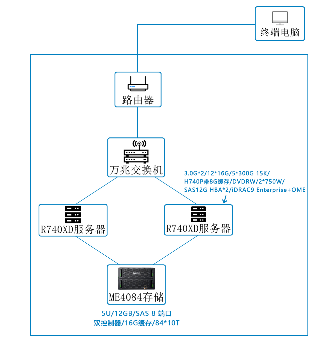 由于项目经常需要多任务同时进行,需要非常大的存储空间,故通过配置近1PB的戴尔存储ME4084,以满足项目的海量数据运行。ME4084可支持84个硬盘盘位,拥有更强的拓展性,简化了服务器容量扩展的挑战,业务应用程序可以高速访问数据,非常适合像徐州医科大学这类智能计算的项目使用。